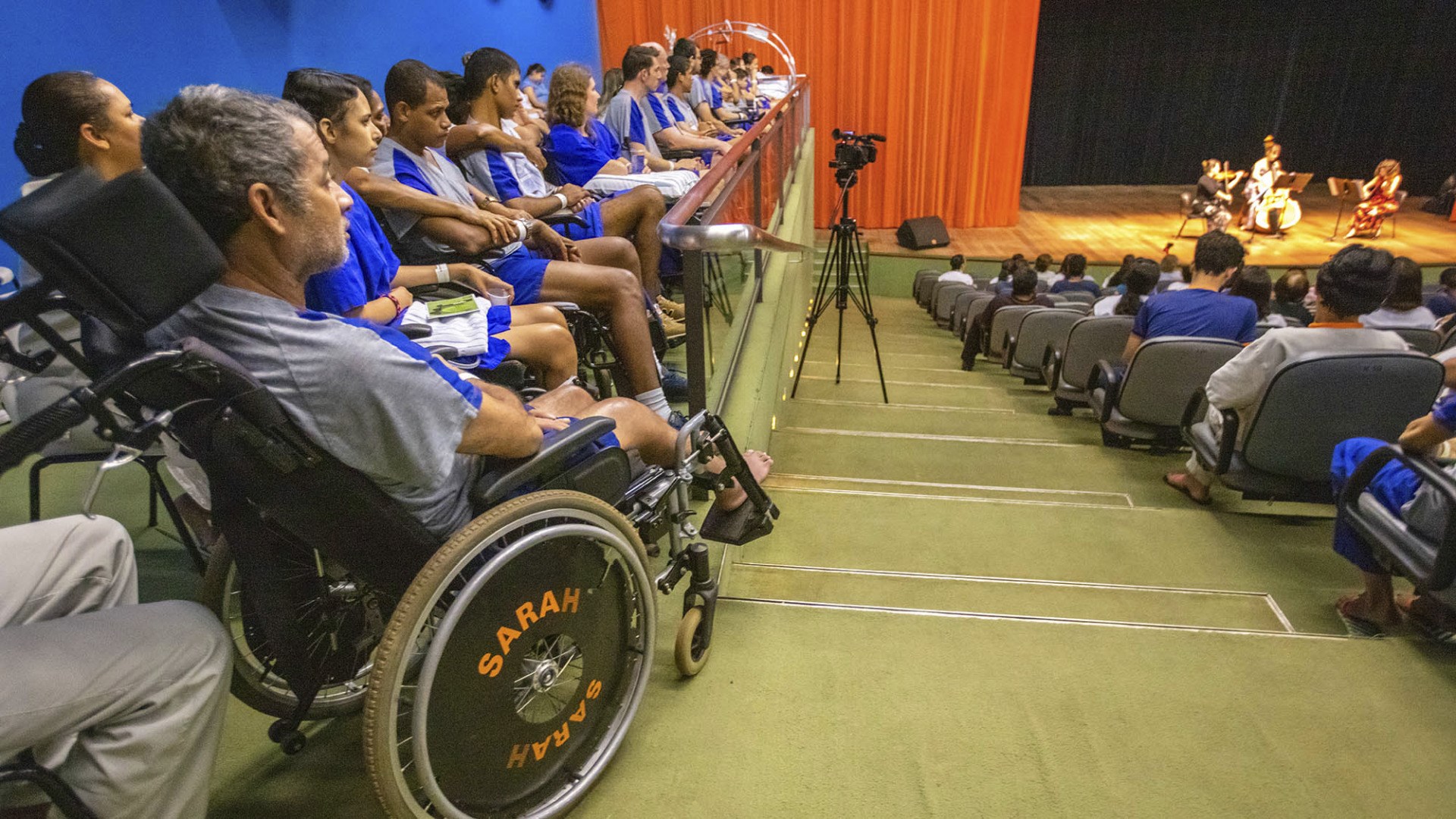 A Orquestra Sinfônica do Teatro Nacional Cláudio Santoro, dando seguimento às apresentações dos “Concertos da Saúde”, trouxe para os pacientes, familiares e funcionários do Hospital SARAH a excelente apresentação do “Trio de cordas”.