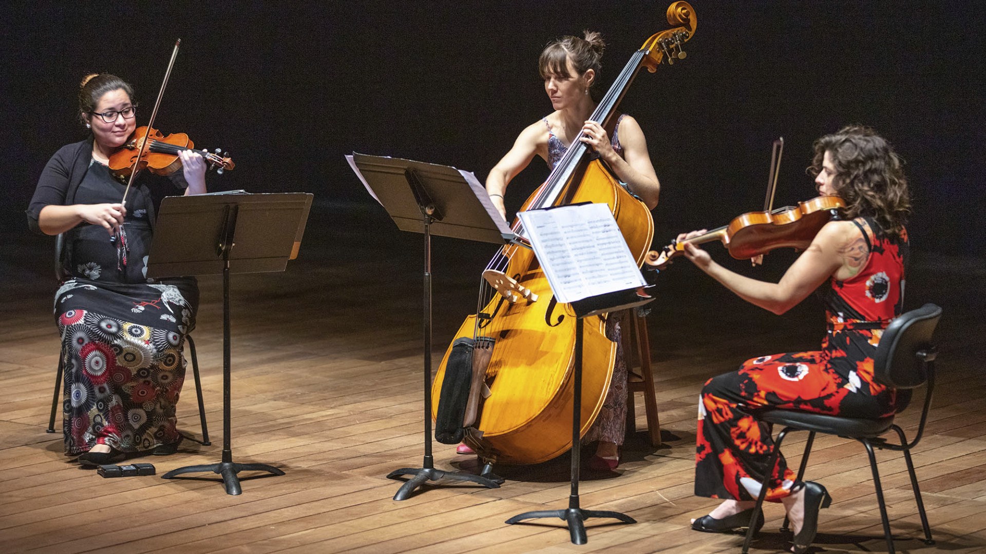 O Trio, composto por Luciana Arrais no violino, Cindy Folly na viola e Larissa Countrim no contrabaixo executou um repertório primoroso e variado que agradou e animou a todos na tarde da última quarta-feira 30/01.