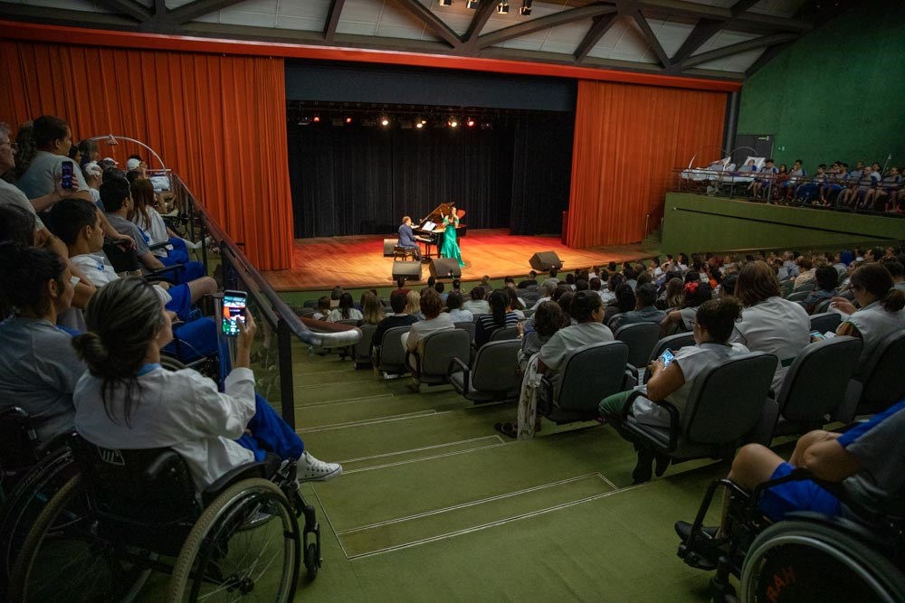 No repertório sucessos consagrados como "É preciso saber viver", "Como vai você" e "Carinhoso". O dueto cantado entre o Maestro e Marina Elali em "Marina Morena" surpreendeu e encantou a plateia. Marina, com seu carisma e sua presença de palco, passeou, abraçou, contagiou e tirou fotos com os presentes. O Maestro, visivelmente emocionado, foi ao encontro dos pacientes e fez a alegria da plateia. A interpretação belíssima da música "Nossa senhora" finalizou a apresentação, deixando aquele gosto de quero mais.