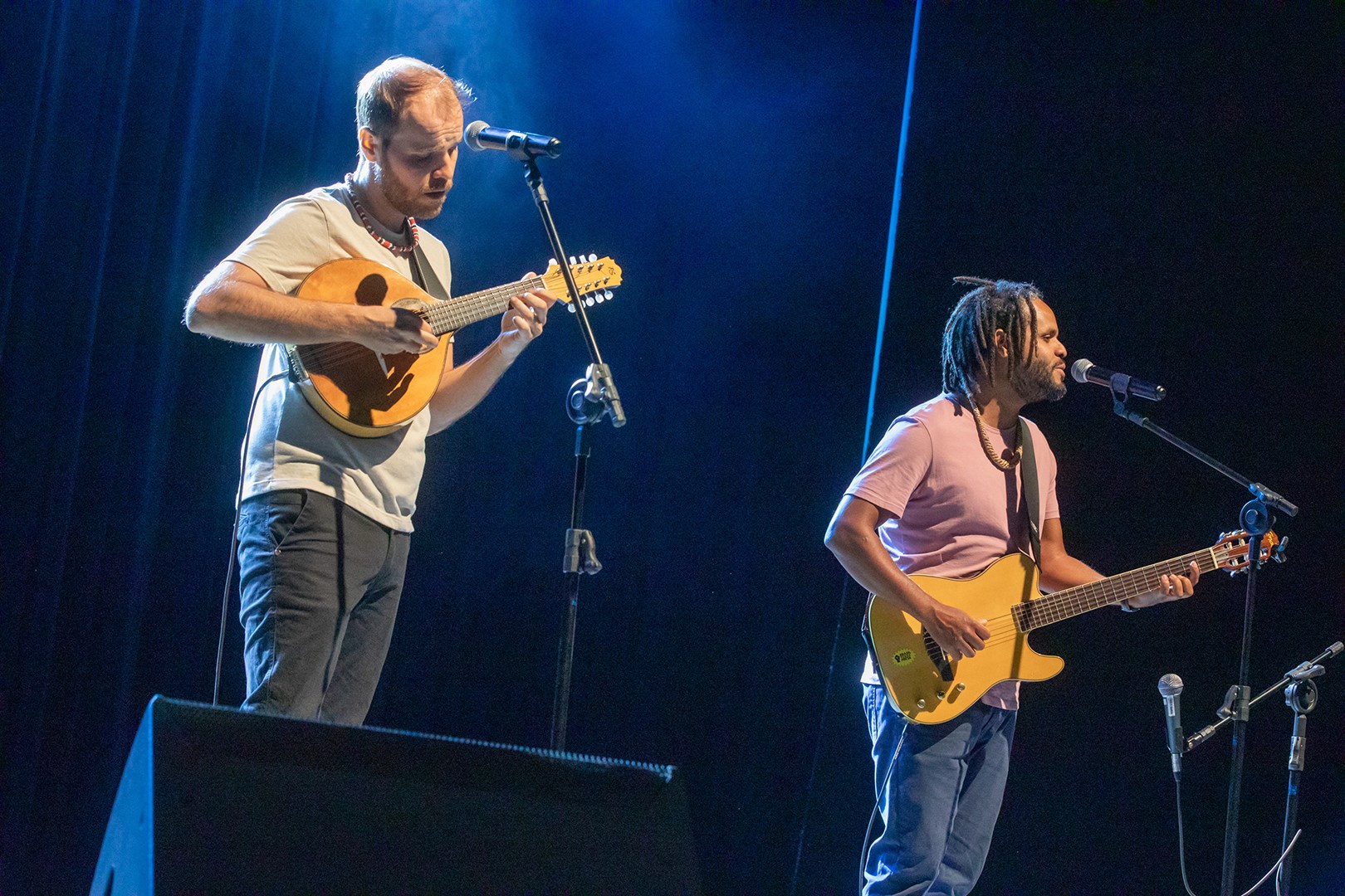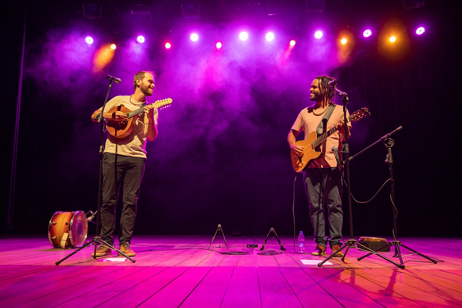 Filipe Braga é bandolinista e compositor, além de pesquisador nas áreas de cultura e saúde mental. Stênio Neves, violão e voz, é um cantautor atento à riqueza do afropop brasileiro e dos diversos estilos rítmicos como samba, reggae e soul.