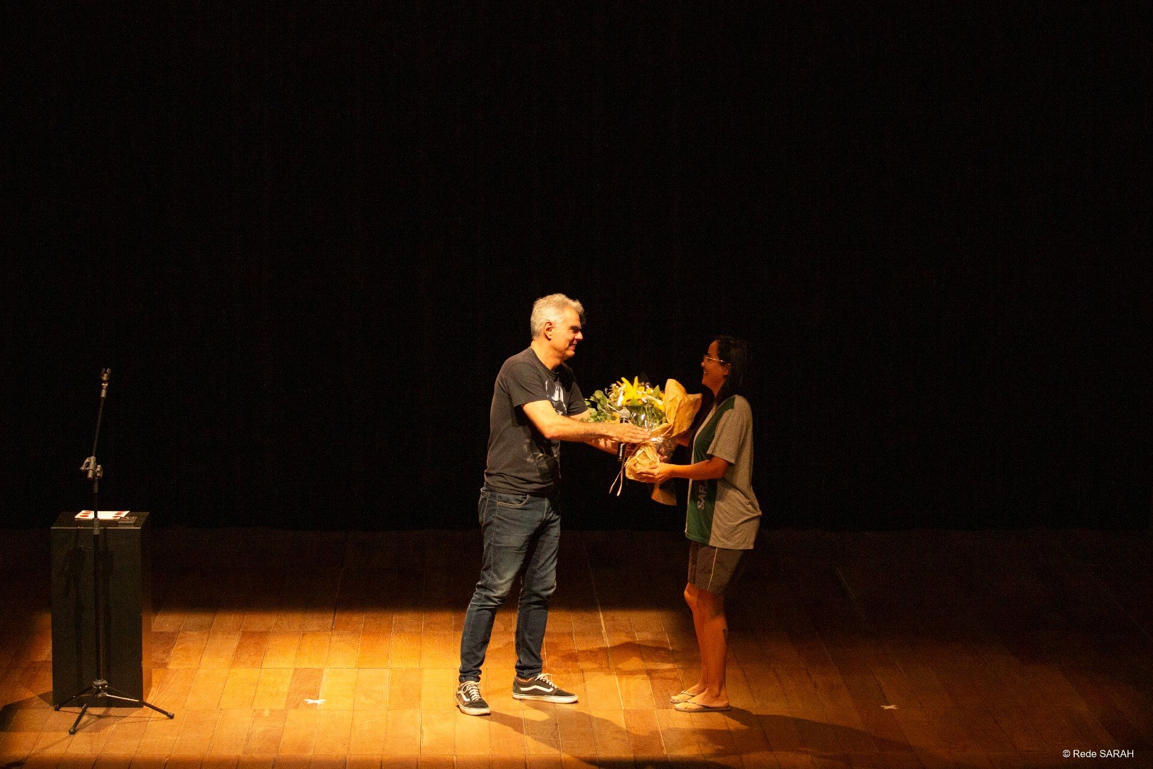 A mãe de Jaqueline e sua acompanhante durante a estada no SARAH, Maria Ribeiro da Mota Luz, disse que seu maior prazer durante essa tarde foi ver os risos da filha. “Eu nunca havia visto esse tipo de comédia, de stand-up, mas o melhor foi ver a Jaqueline assistindo”, disse Maria.