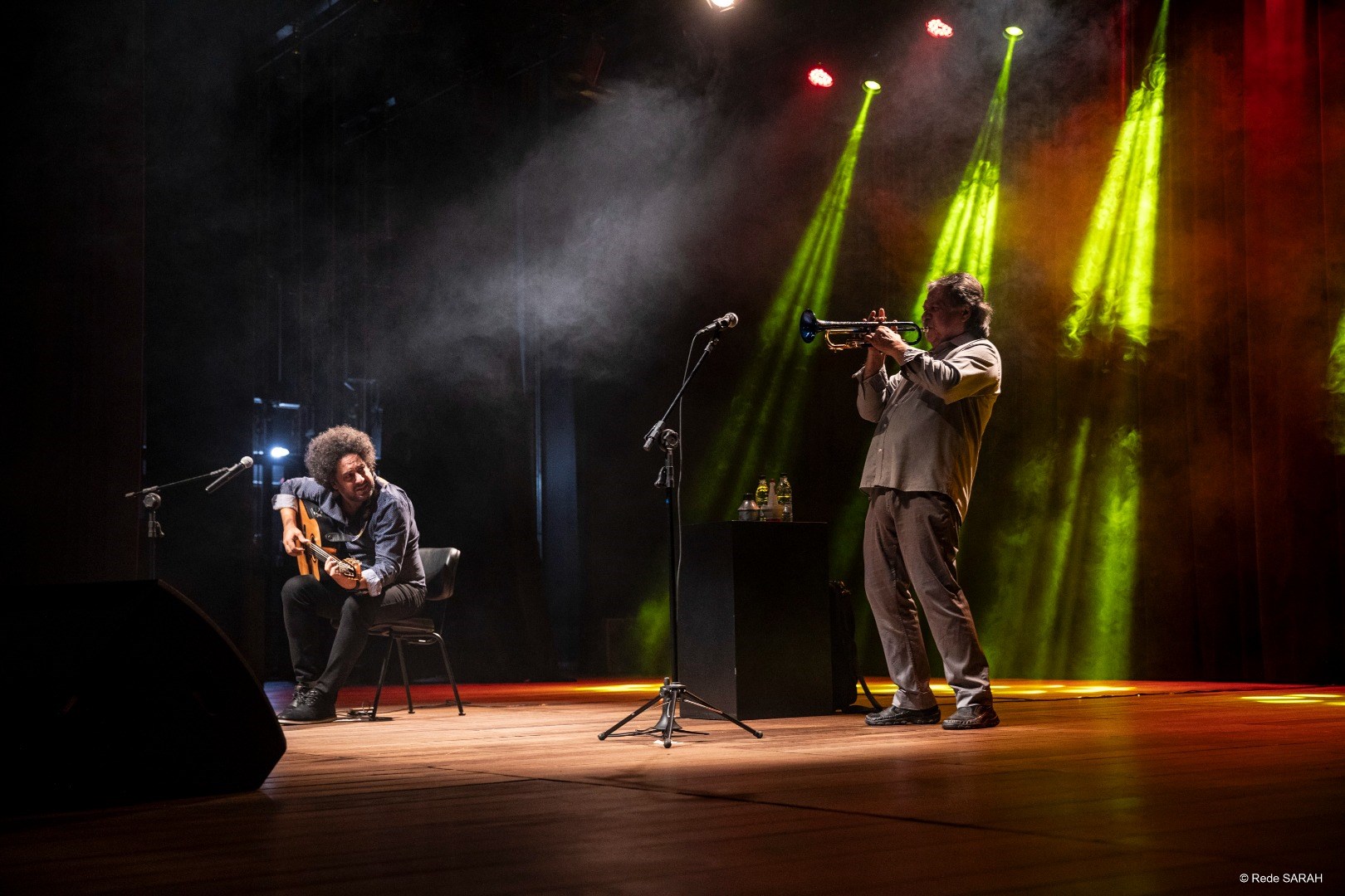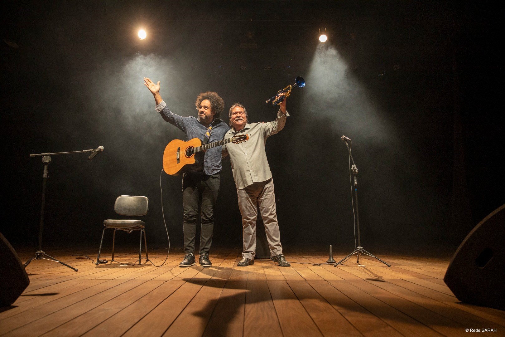 O violonista, guitarrista e compositor Diego Figueiredo e seu convidado, o trompetista e arranjador Chico Oliveira, apresentaram-se no Teatro SARAH Brasília, na tarde do dia 5 de dezembro de 2023, exclusivamente para pacientes, acompanhantes e colaboradores da Rede.