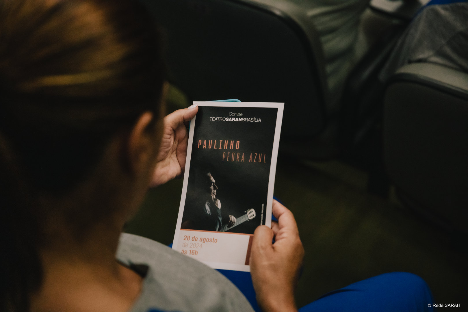 Na tarde de 28 de agosto, o Teatro SARAH recebeu a presença ilustre do compositor, poeta e cantor brasileiro Paulinho Pedra Azul com sua apresentação em homenagem aos seus 70 anos de vida. Mineiro do Vale de Jequitinhonha, Paulinho trouxe ao público um momento de emoção, simpaticidade e bom humor acompanhado da leveza e sutileza dos acordes transmitidos pelo artista.
