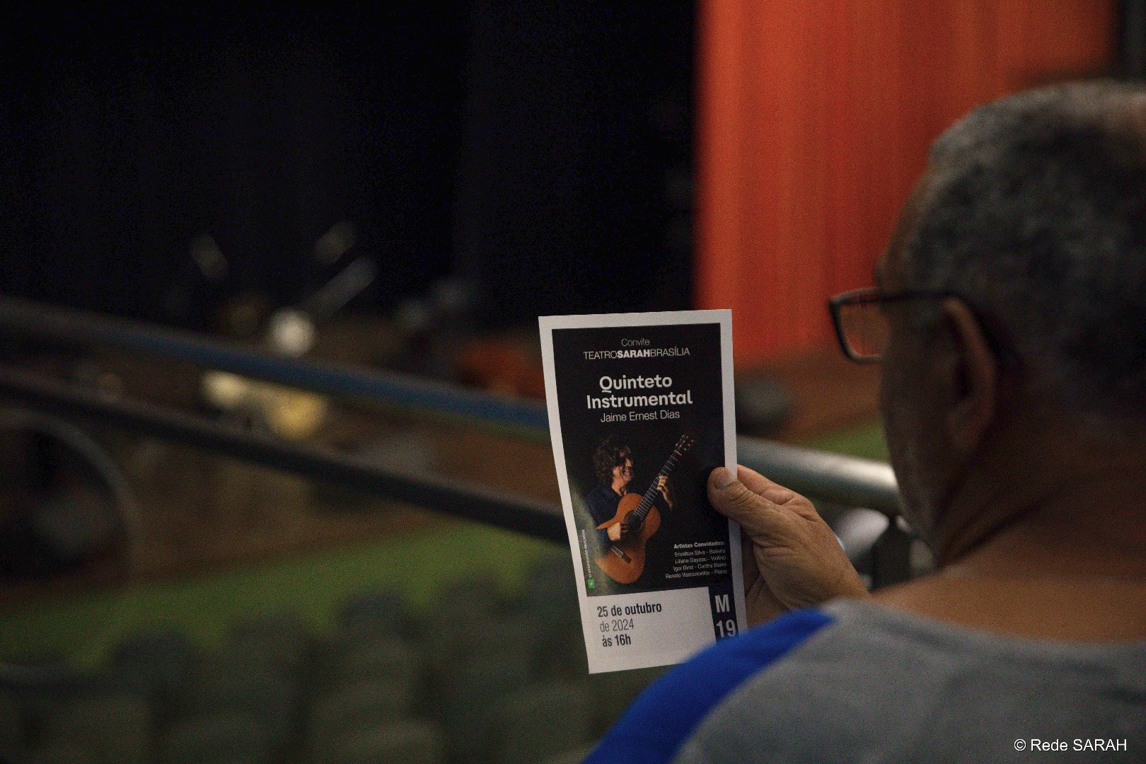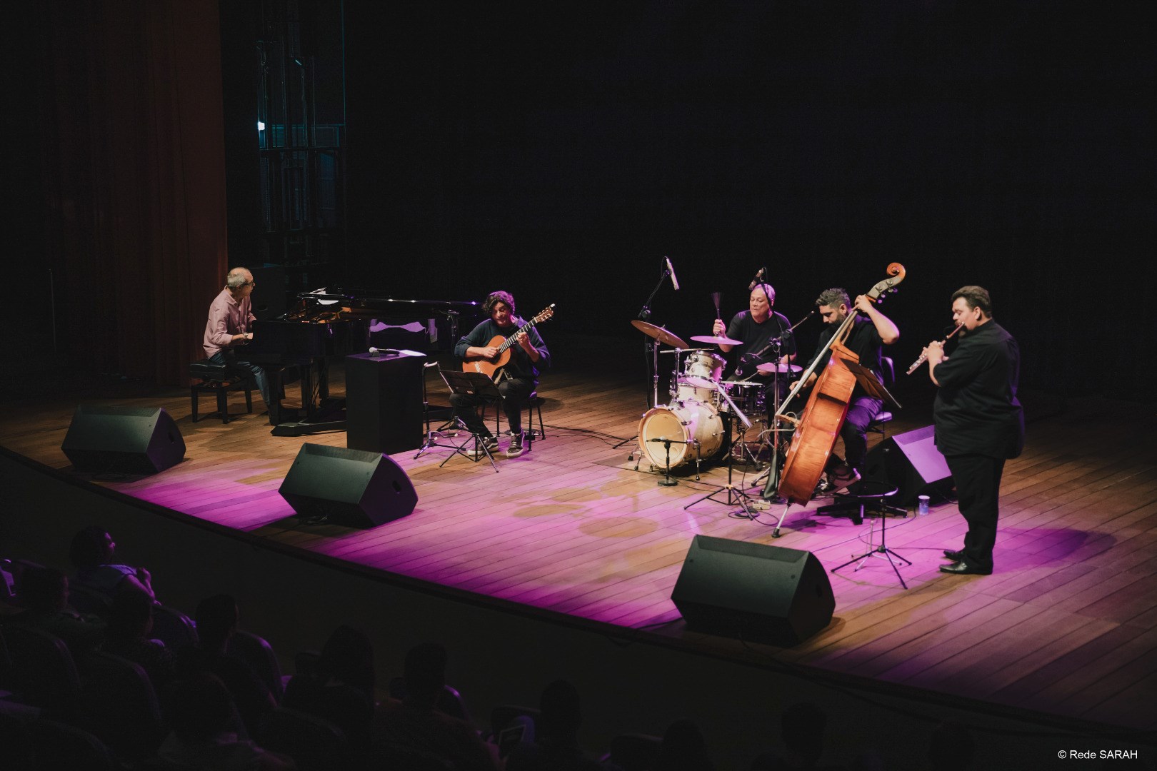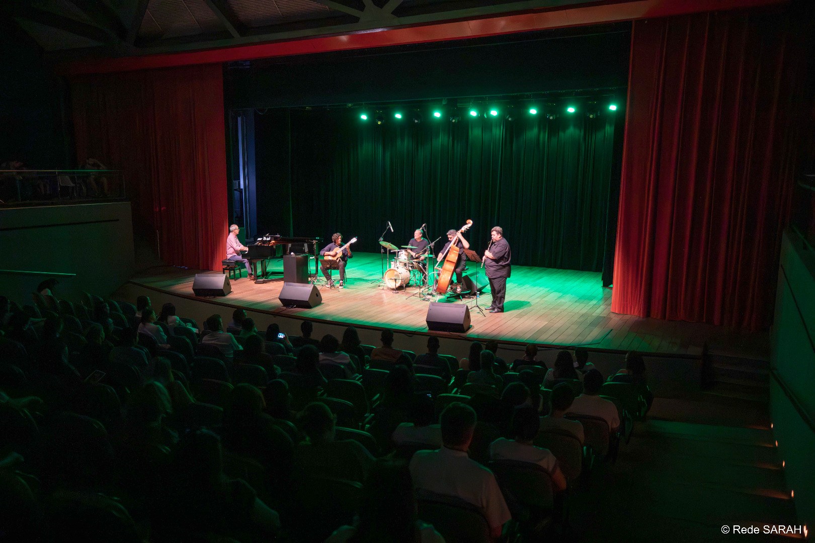 Em 25 de outubro, o Teatro SARAH ficou repleto pelos ritmos clássicos do jazz, choro, bossa nova e valsa em seu palco, com Jaime Ernest Dias e seu quinteto instrumental. Parte do trabalho autoral de Jaime, a iniciativa é composta por amigos do artista, contando com Renato Vasconcellos no piano, Igor Diniz no contrabaixo, Sérgio Morais na flauta e Erivélton Silva na bateria e, em uma improvisação impressionante, encantaram a todos os presentes com uma tarde acústica animada e suave.