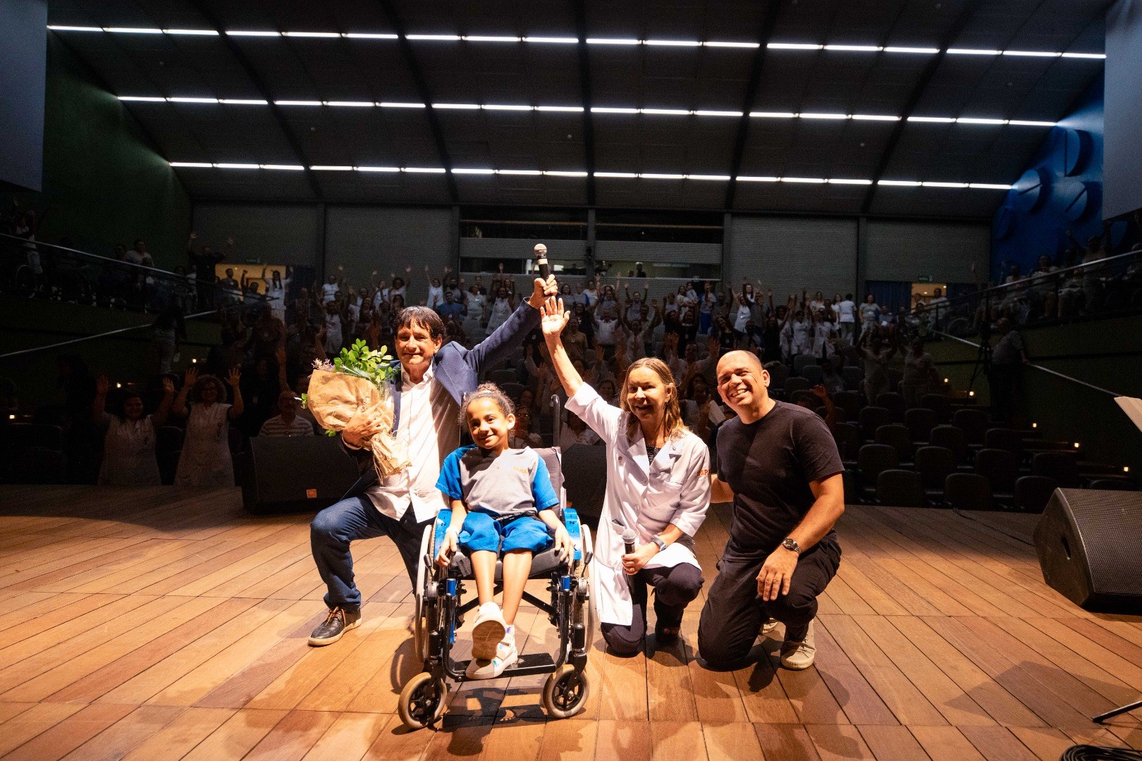 Ao fim do show, Biafra recebeu flores da paciente Emilly Brito, 14 anos, do SARAH Brasília, como forma de agradecimento de toda equipe da Rede, pelo show fascinante que realizou.