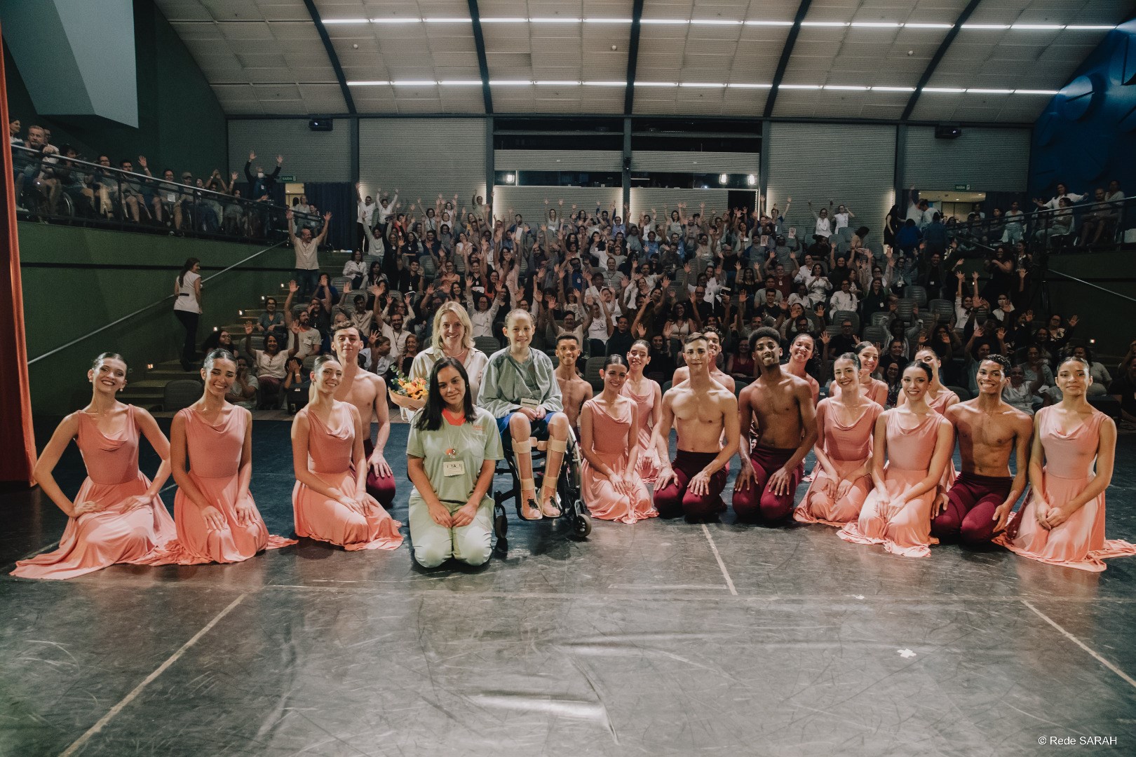 Aplaudidos por todo o teatro, os artistas receberam flores da paciente Lara Sophia Ribeiro de Melo, prometendo retornar com novos espetáculos ao palco do SARAH.