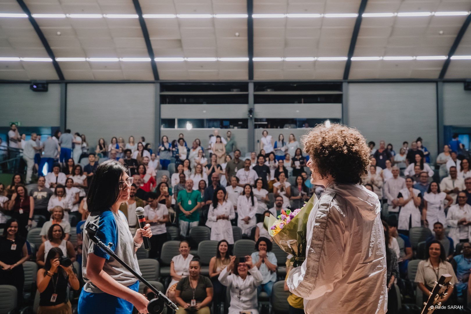 “Eu não conhecia e foi emocionante. É legal ver na prática as coisas que a gente acredita da música”. Contou o músico sobre a experiência de se apresentar no Teatro SARAH. Também falou sobre o relato de um médico, que consegue utilizar menos medicamentos para dor depois do show: “Você vê a força da música”.