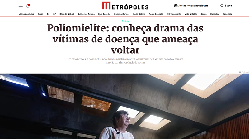 O portal de notícias Metrópoles alertou que a queda na cobertura vacinal pode trazer a poliomielite, causadora da paralisia infantil, de volta ao Brasil, destacando a história de três pacientes tratados de sequelas dessa doença no SARAH Brasília.