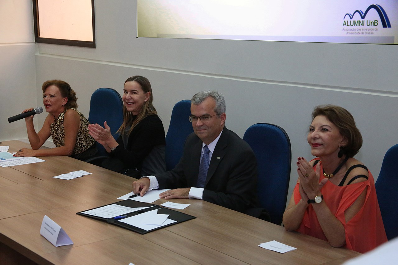 Dra. Lúcia Willadino Braga foi homenageada em comemoração aos 31 anos de criação da Associação dos Ex-alunos da Universidade de Brasília juntamente com o reitor, dr. Ivan Camargo.